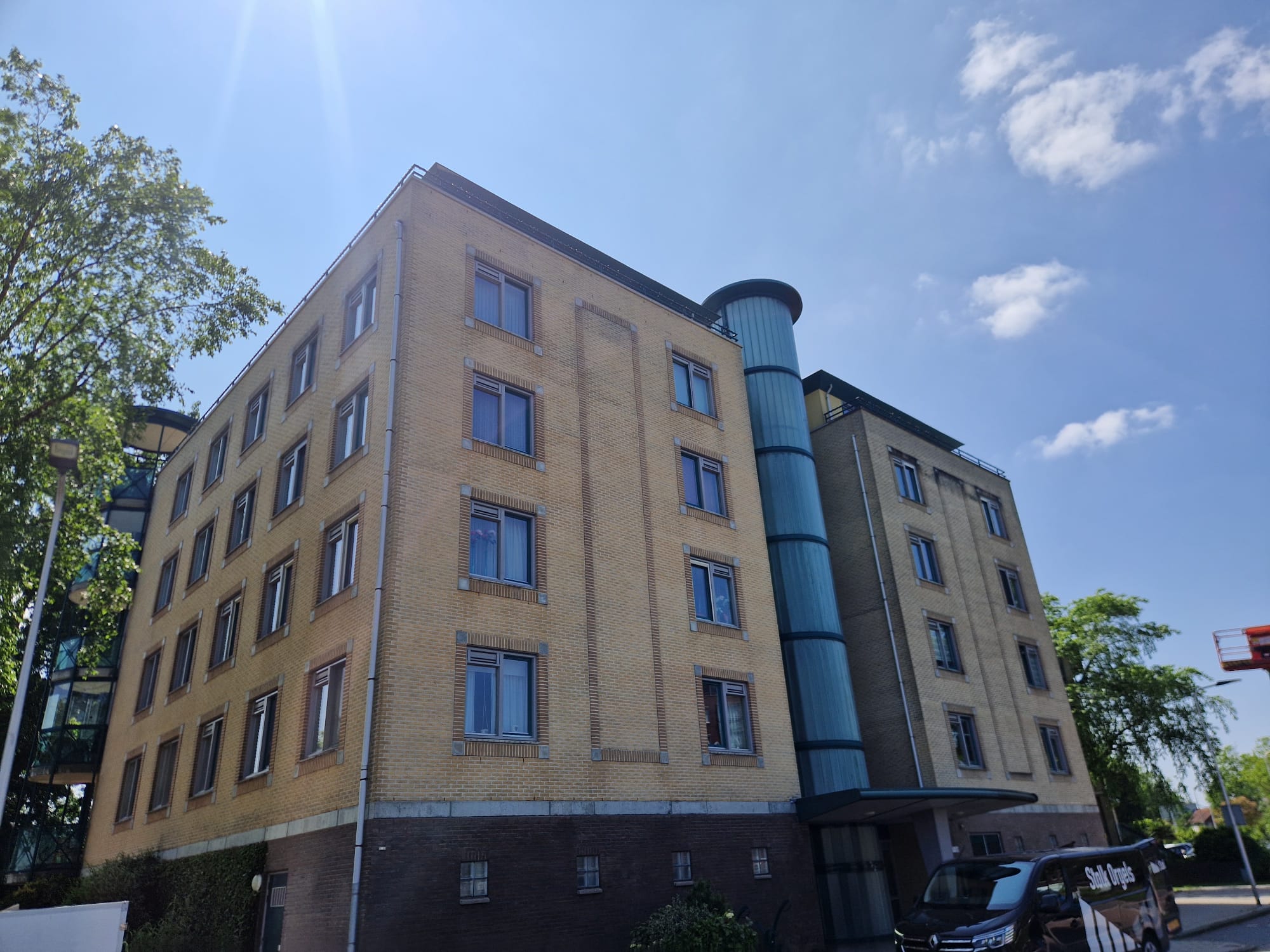 In Krimpen aan de IJssel hebben wij het metselwerk en de betonnen diktekanten van een appartementencomplex grondig gereinigd. Door de jaren heen hadden weersinvloeden en aanslag het oppervlak vervuild, waardoor de gevel zijn frisse uitstraling verloor.